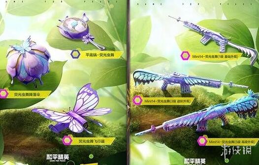 C、其他皮肤:荧光虫舞平底锅、荧光虫舞降落伞、荧光虫舞飞行器、荧光虫舞头盔、荧光虫舞背包、MINI14荧光虫舞。