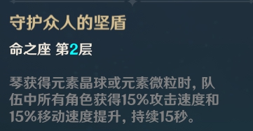 质变命座,如果要说到琴作为一个副C奶妈唯一的不足在哪里,那就是无法给队友增伤,那么这个命座赋予了琴增伤能力,不同于班尼特、莫娜和砂糖等角色带来的各个区数值的增加,越到后期这些数值被稀释得越严重。而抗性正好相反,游戏前期的敌人抗性低,属性免疫的敌人以外,抗性都可以被非常简单地降至0,此时这个命座最差是相当于风元素属伤增加20%。随着游戏难度的提高,以后出现初始抗性较高的敌人时,这个命座的收益将会大大提高。