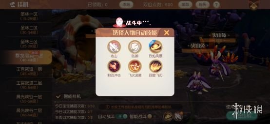 造梦者通过主界面【巡查】,即可进入巡查地图界面,可以看到当前巡查会遭遇到的怪物。在巡查内还能进行战斗设置,包括角色释放技能、宠物释放技能,是否选择智能巡查和是否开启双倍经验等。